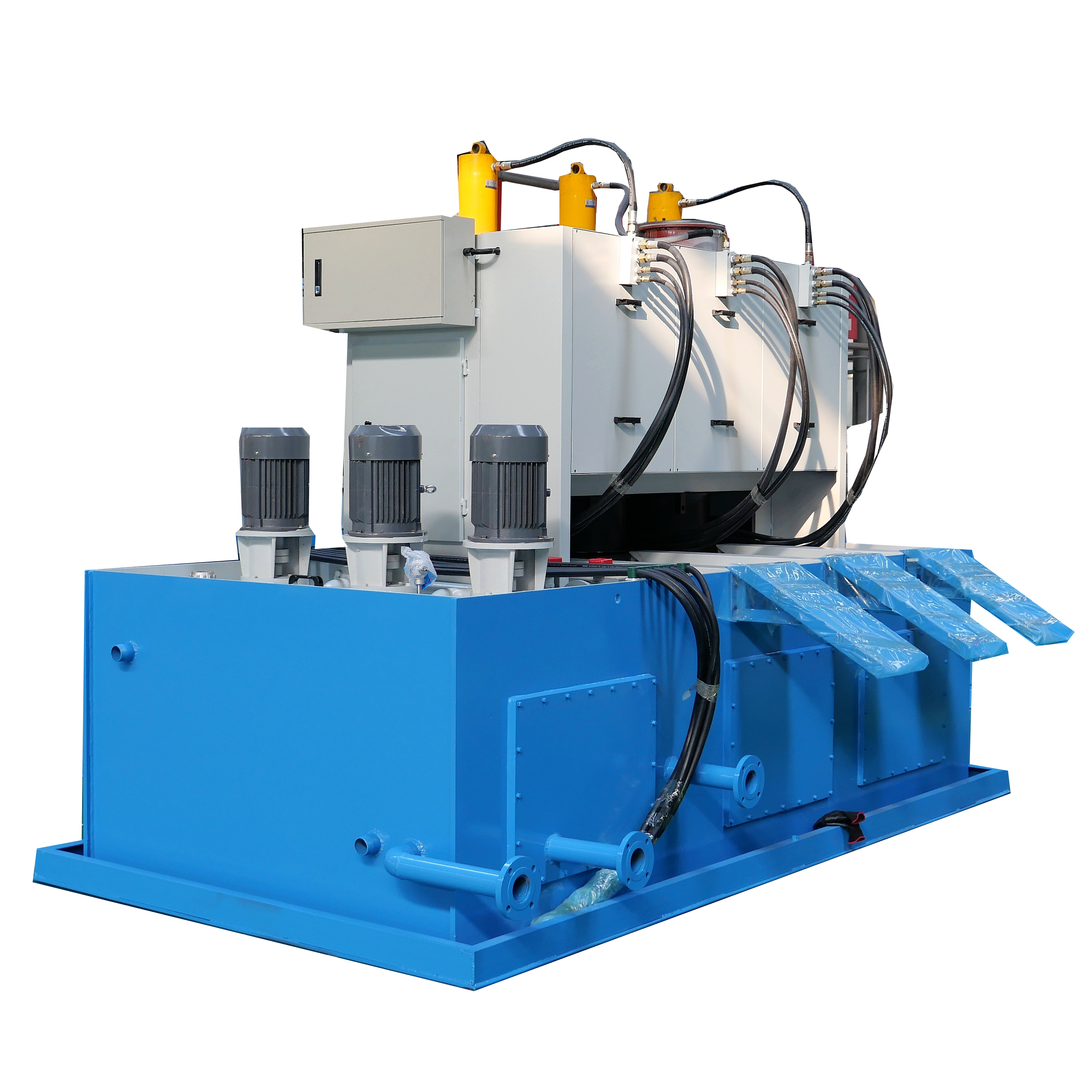 4) 工件內徑采用芯軸加下拉油缸脫模,端面采用小油缸脈動加壓(或固定加壓)的方式。